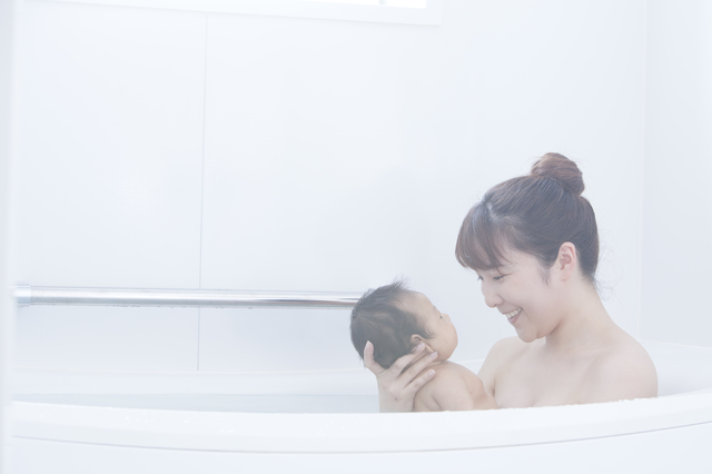 お湯の温度は38〜40℃を目安に、短時間(5分以内)で済ませましょう。数を数えたり歌ったりしながら、親子のスキンシップを楽しんでくださいね。