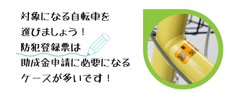 購入後は、盗難防止のためにも必ず防犯登録をすませましょう。防犯登録票は助成金申請に必要になるケースが多いですよ。