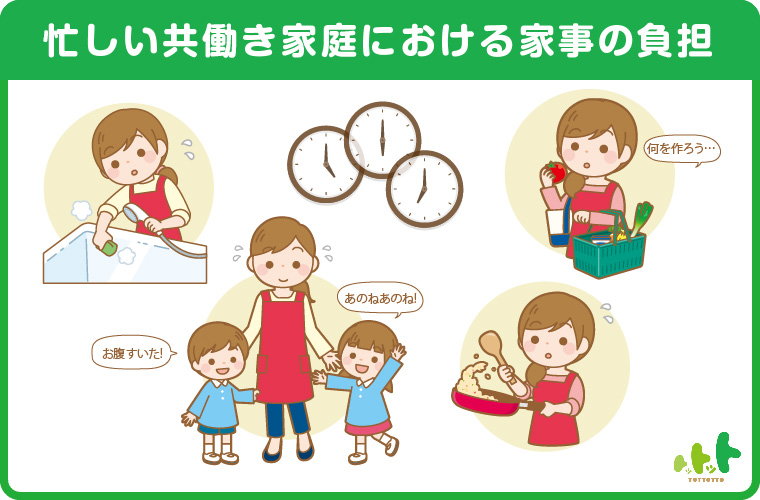 仕事が終わって家に帰ると、待っているのは家事と子どものお世話です。朝は子どもの着替えや食事の準備、保育園や幼稚園への送り迎えに追われて、ほっと一息つく時間もないですよね。夜も、周りを気にして掃除機をかけることができず、限られた時間の中で他の家事を片付けなくてはなりません。